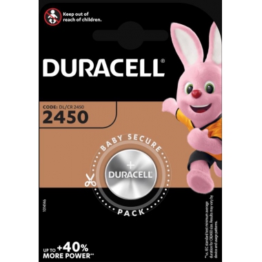 Pila Duracell Plus di tipo Coin Cell. Ad alta potenza, adatta per dispositivi elettronici.