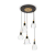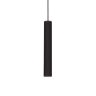 Montatura in metallo rifinito in vernice nera opaca con applicazione in legno naturale. Diffusori in vetro soffiato trasparente. Cavi in tessuto nero.