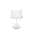Montatura in metallo. Disponibile in nero e bianco opaco con paralume rivestito in tessuto.