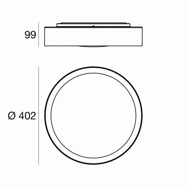 Plafone a singola emissione per applicazione indoor. La sorgente luminosa LED, di colore bianco caldo, con distribuzione luminosa General Lighting, è composta da 1 LED topled, con una CCT 3000 K ed un CRI 80; il flusso luminoso della sorgente è di 2460 lm, con un'efficienza nominale di 117.1 lm/W.